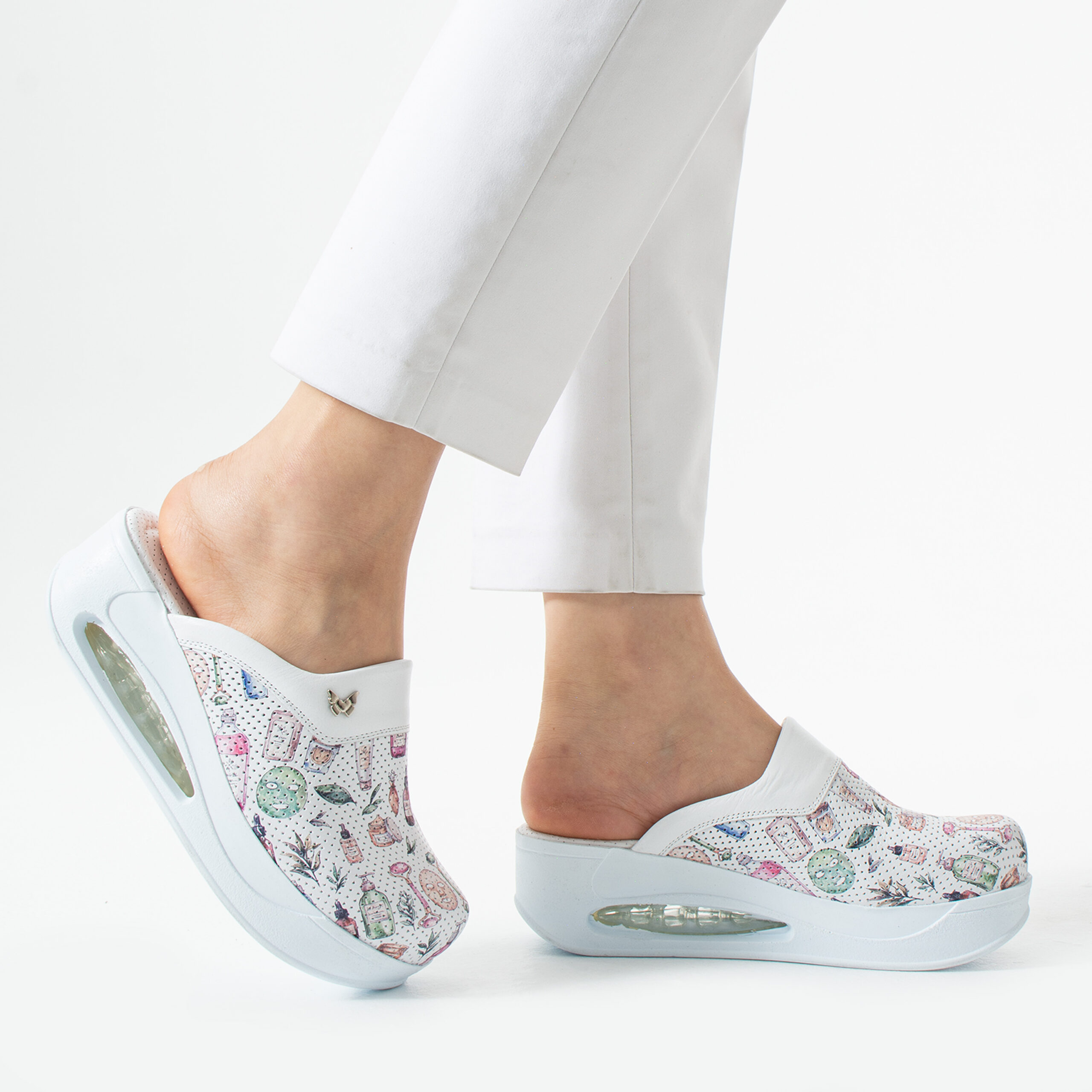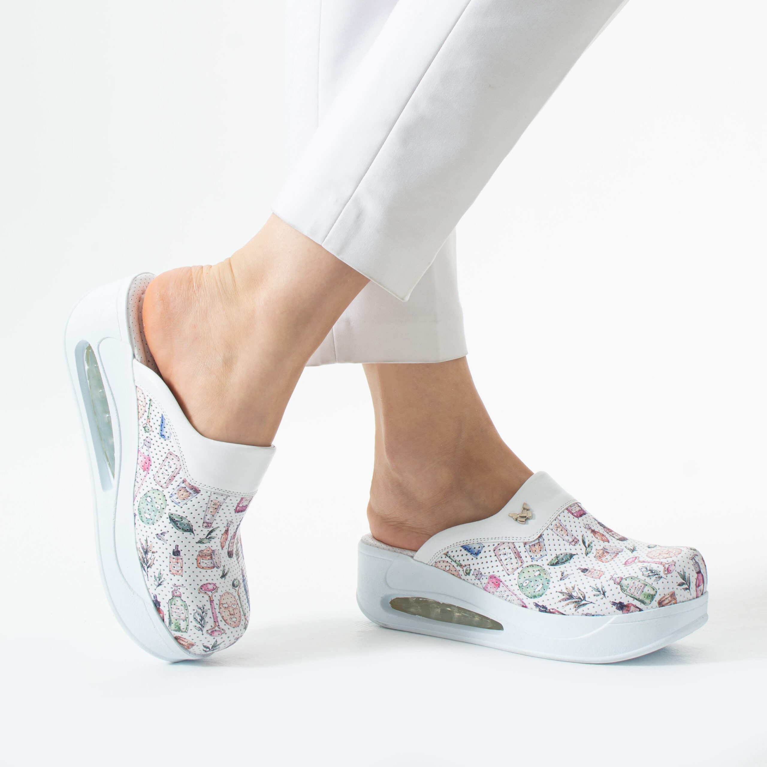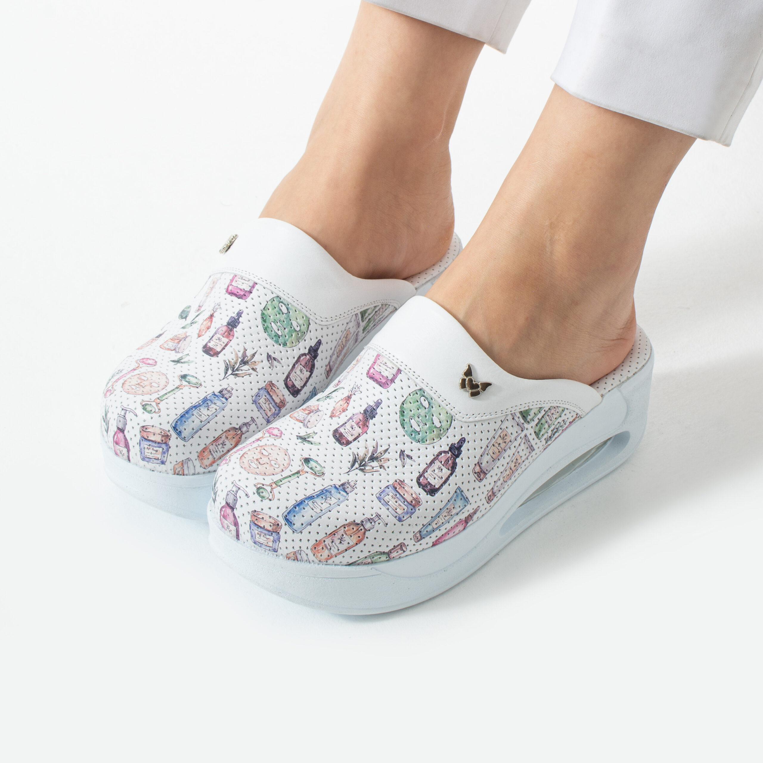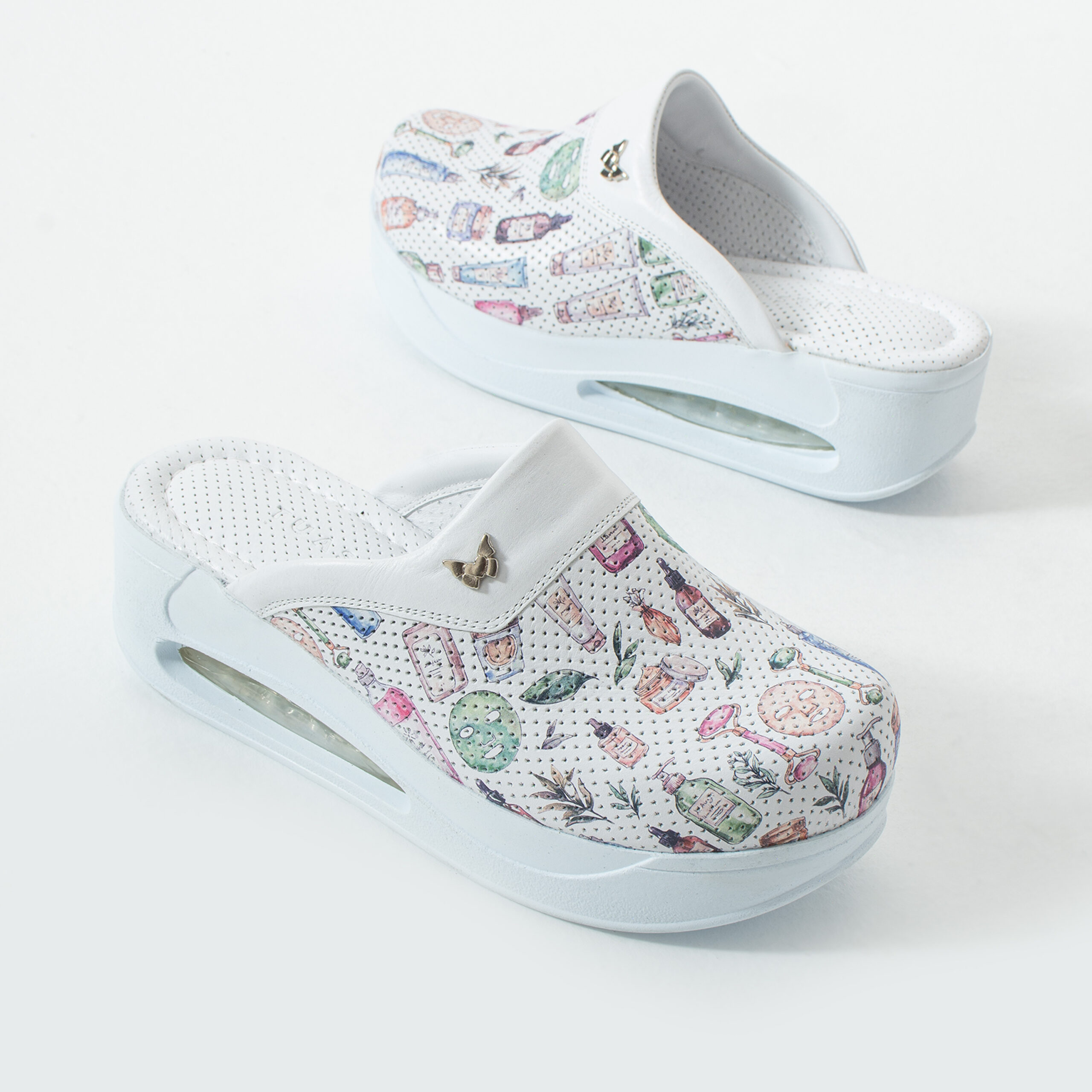 Анатомични работни чехли на платформа от естествена кожа – принт SkinLab