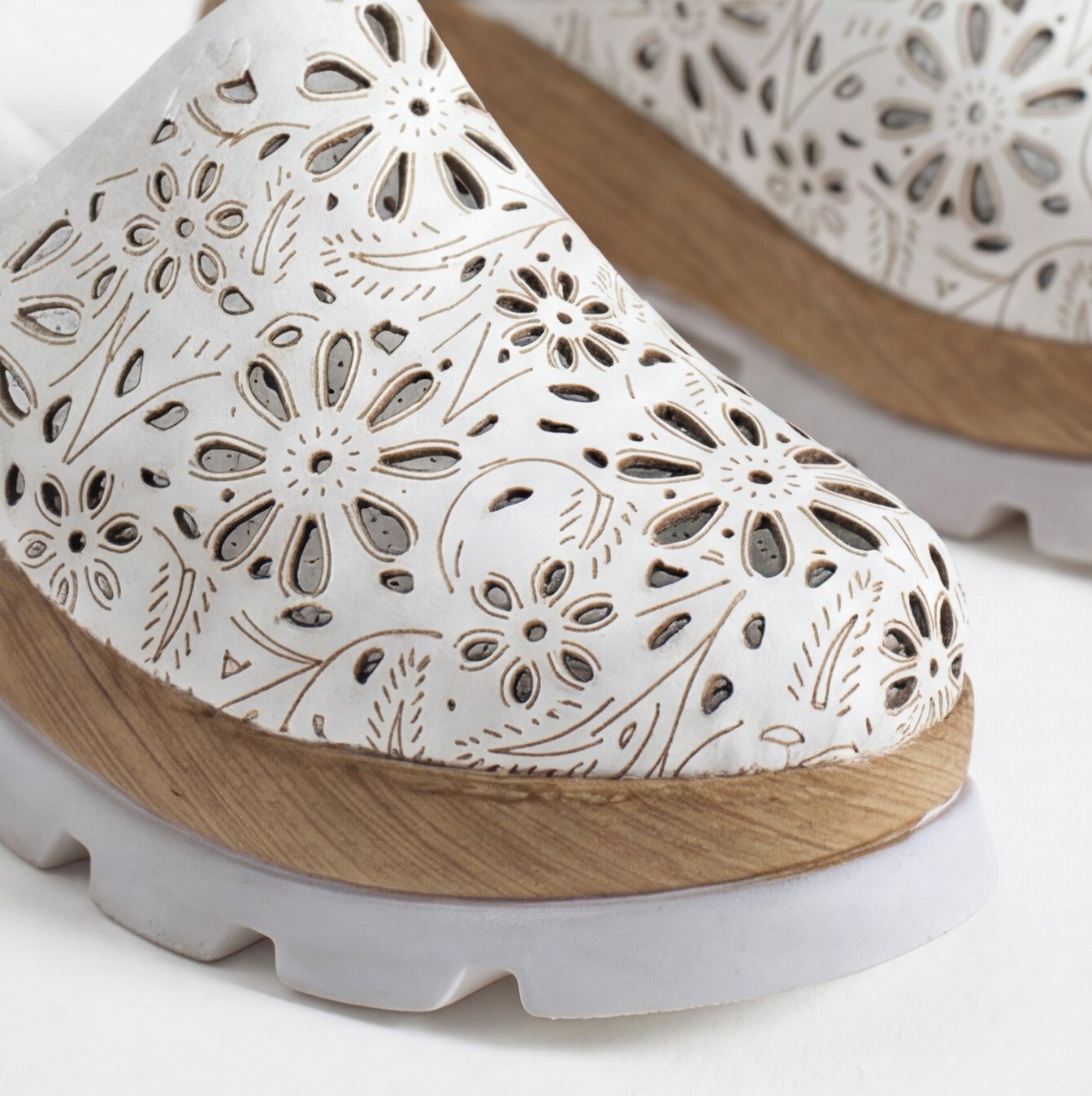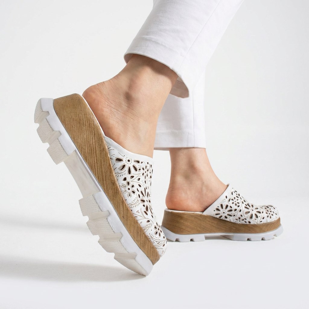 Бяло дамско сабо от естествена кожа на платформа Бяло дамско сабо от естествена кожа на платформа