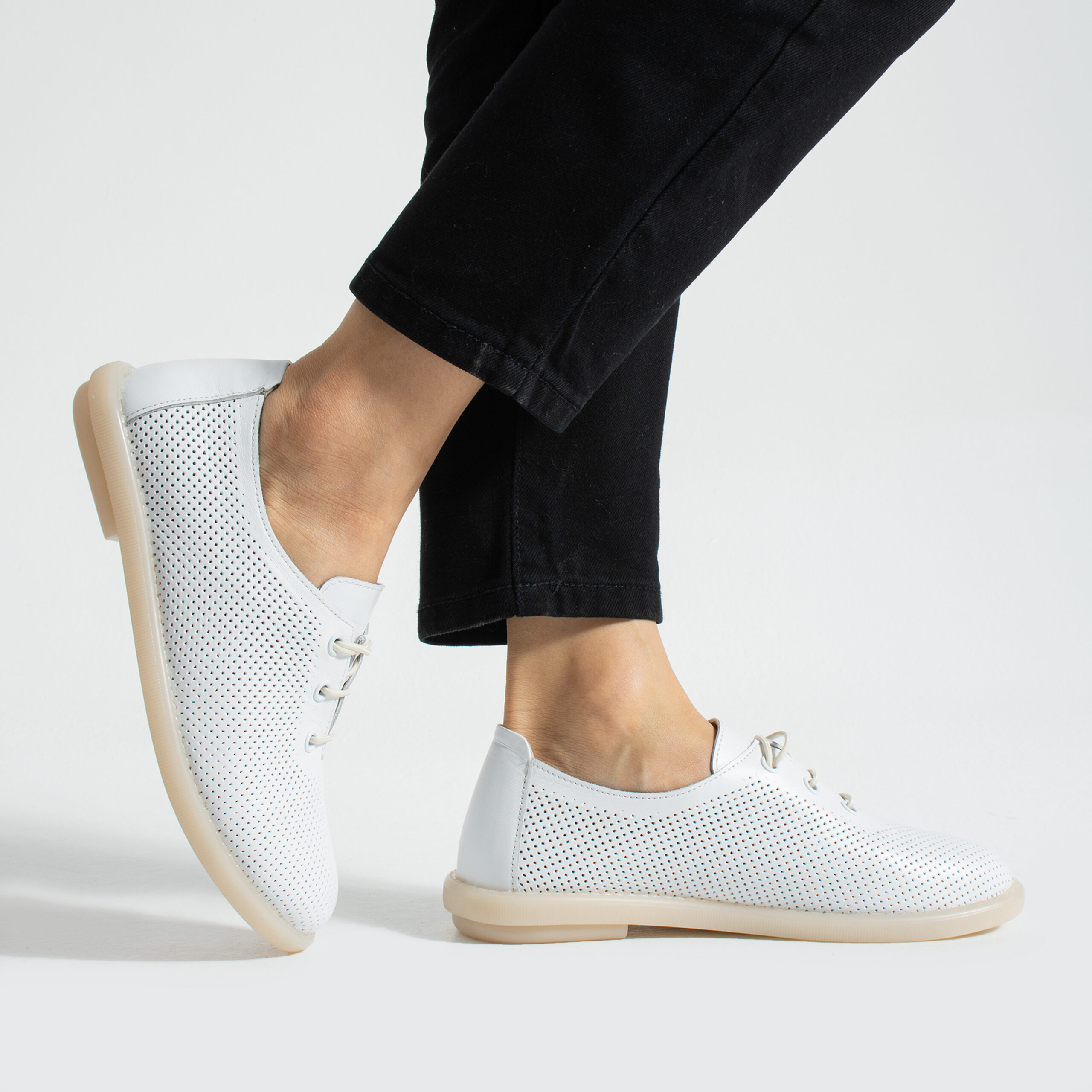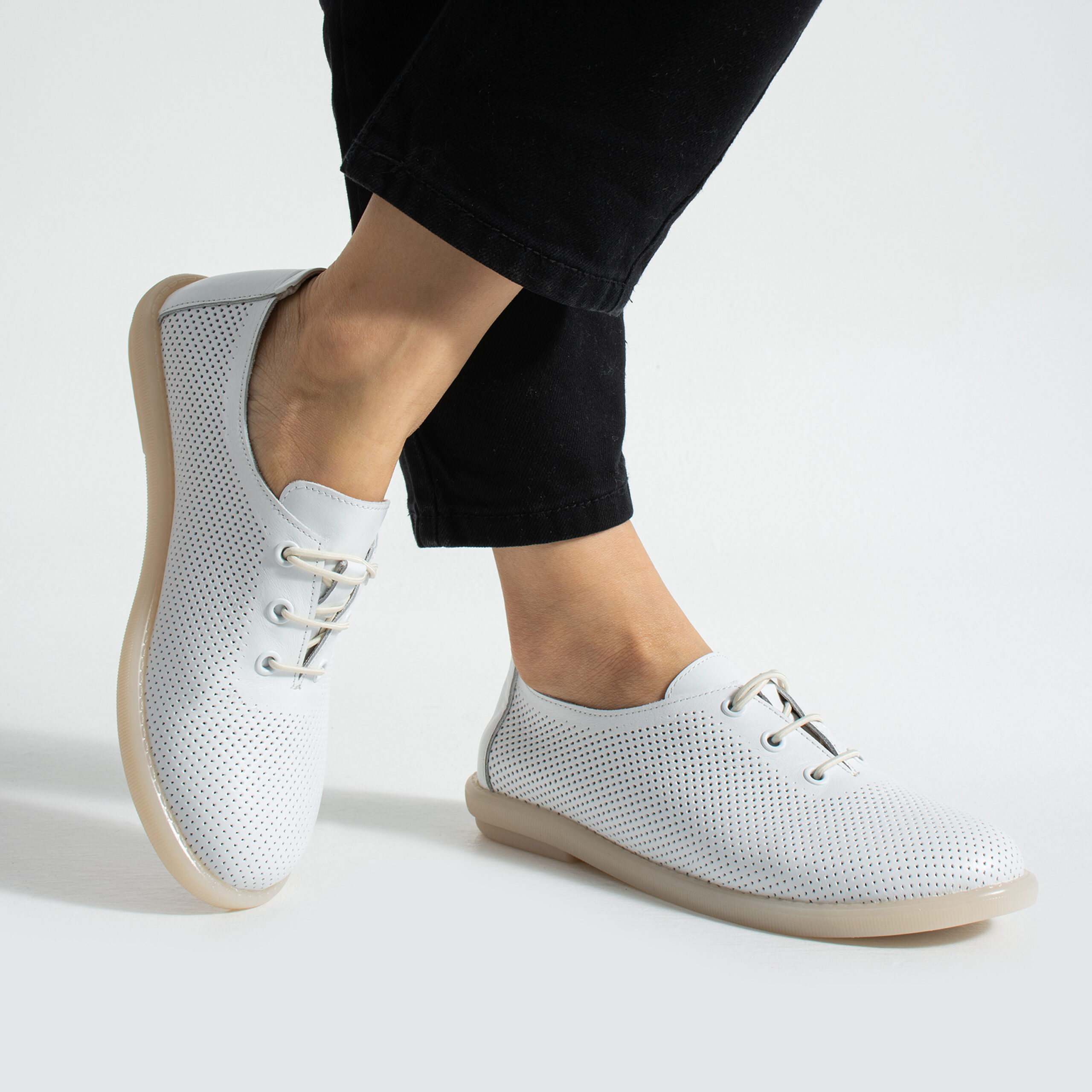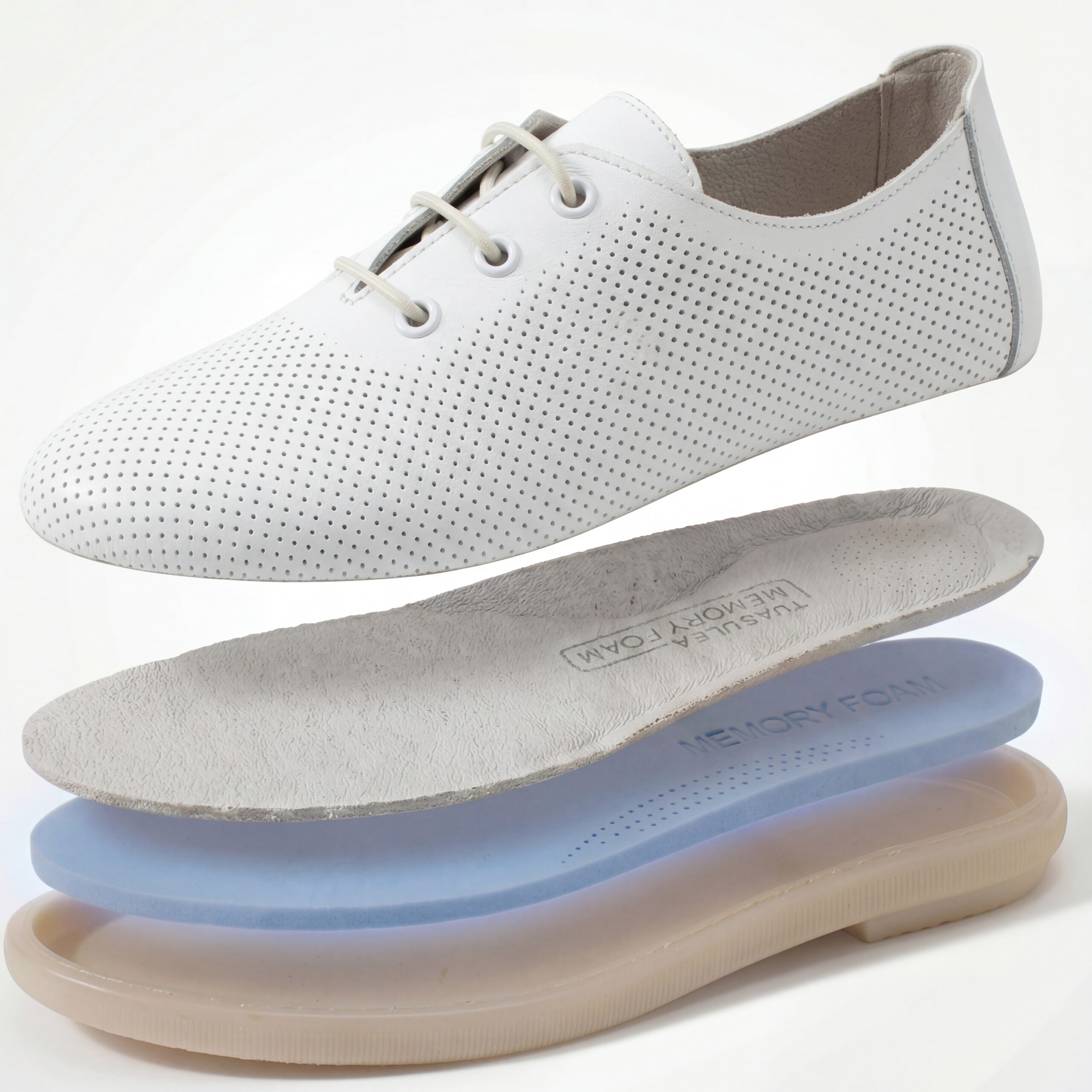 TUASOLEA Memory Lite са дамски обувки от естествена кожа, създадени с мека анатомична стелка с мемори пяна за дни, в които прекарваш много време на крак и държиш най-вече на удобството. Изчистеният бял силует ги прави лесни за комбиниране и подходящи както за ежедневието, така и за по-спортно-елегантни визии.