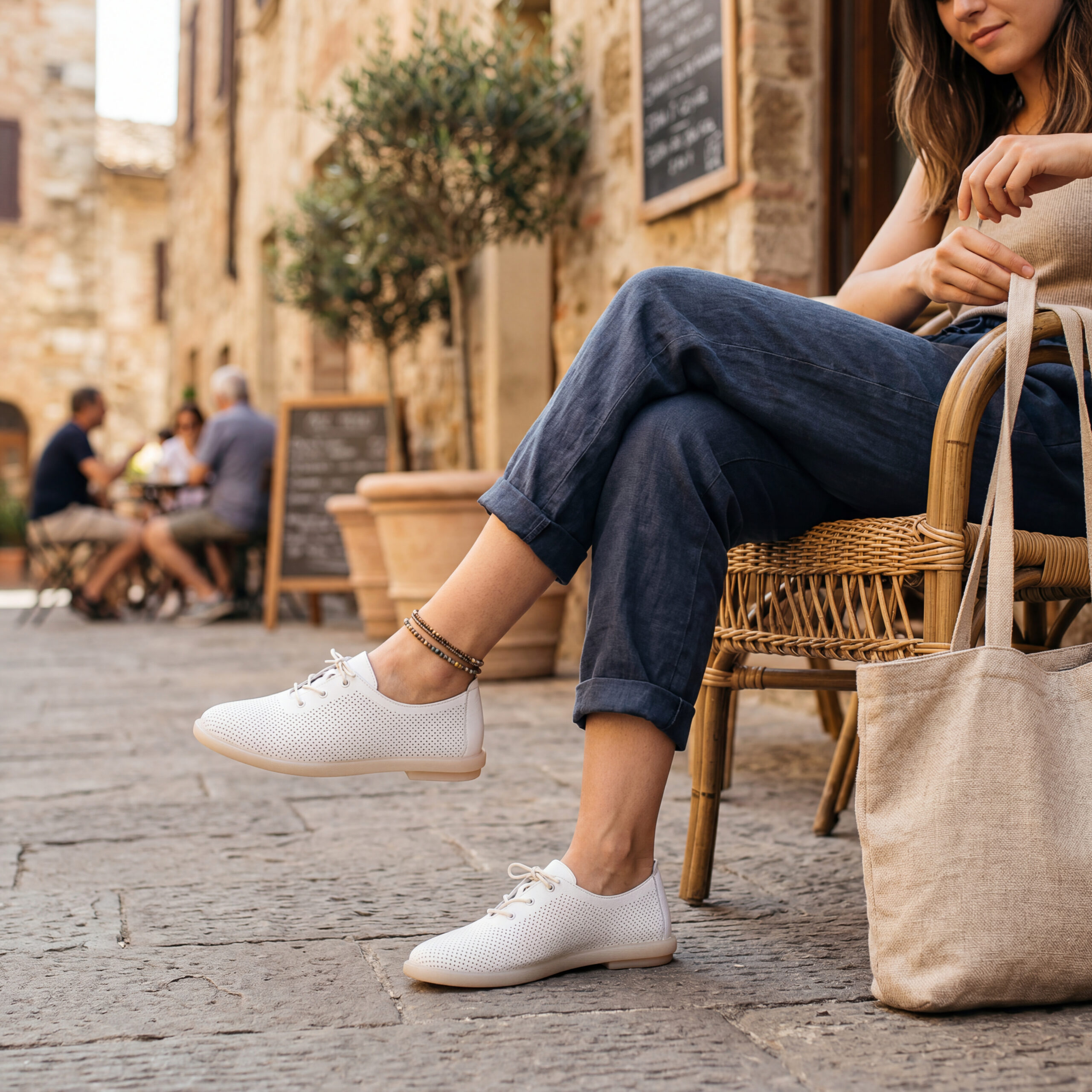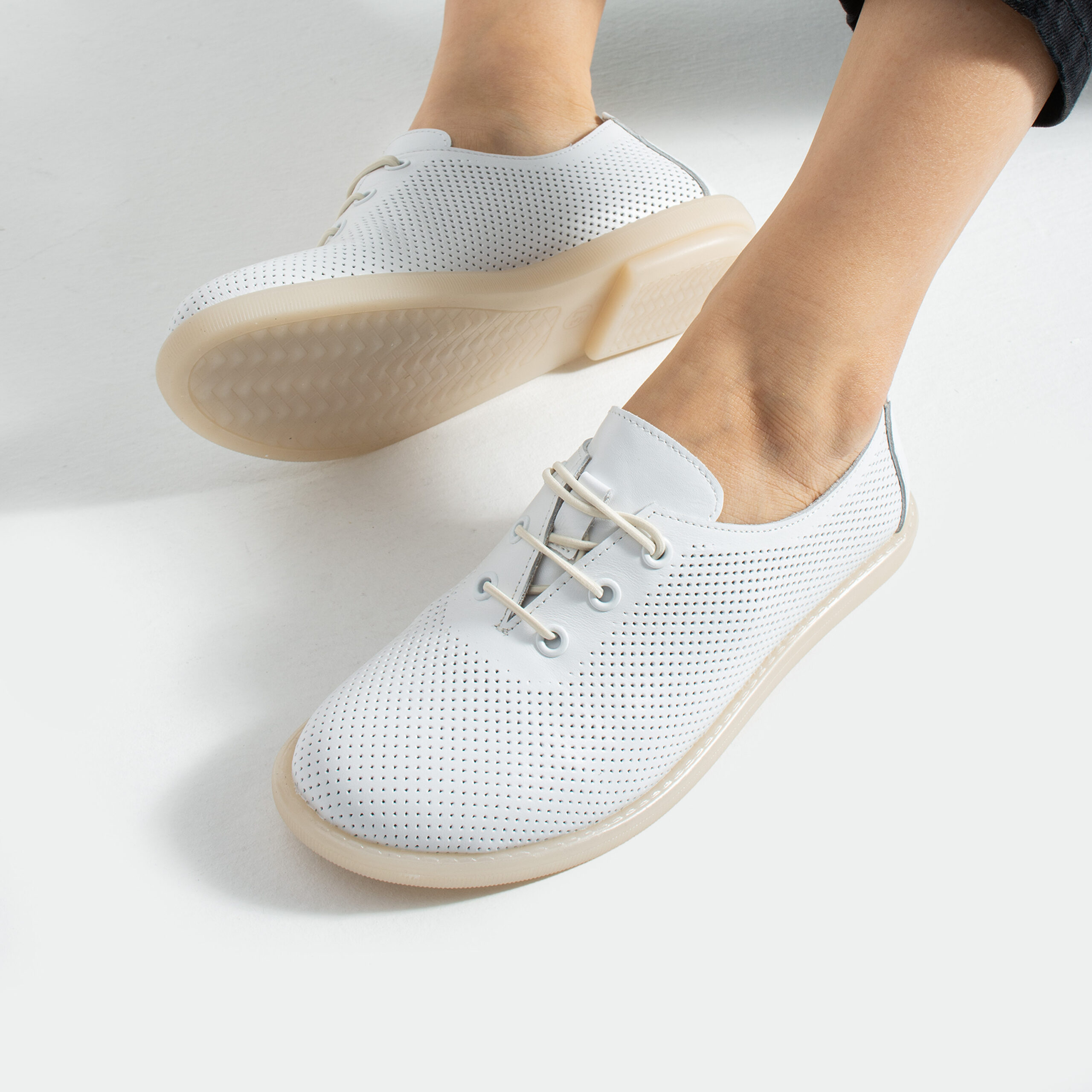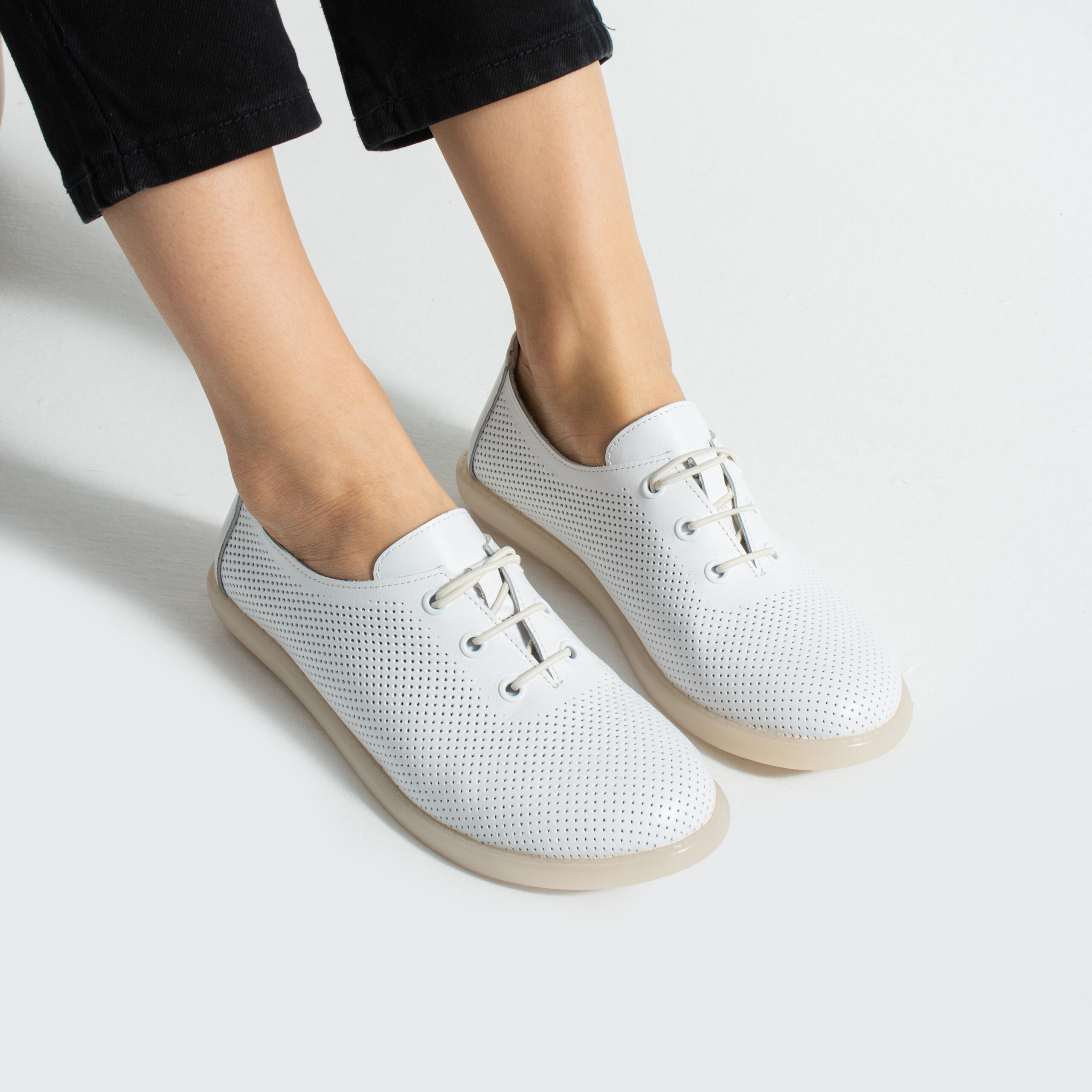 TUASOLEA Memory Lite са дамски обувки от естествена кожа, създадени с мека анатомична стелка с мемори пяна за дни, в които прекарваш много време на крак и държиш най-вече на удобството. Изчистеният бял силует ги прави лесни за комбиниране и подходящи както за ежедневието, така и за по-спортно-елегантни визии.