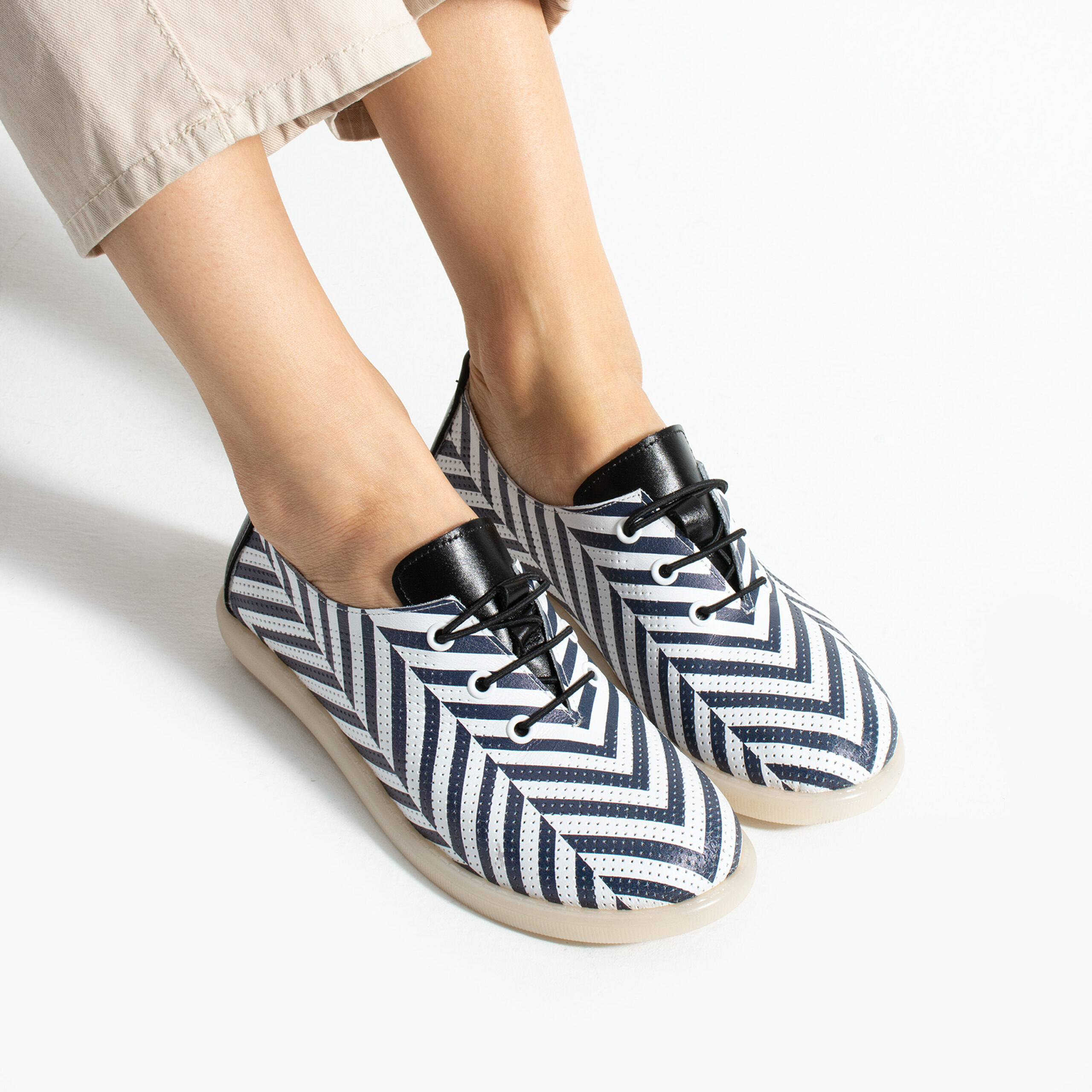 Дамски обувки с мемори пяна от естествена кожа с геометричен принт Дамски обувки с мемори пяна от естествена кожа с геометричен принт