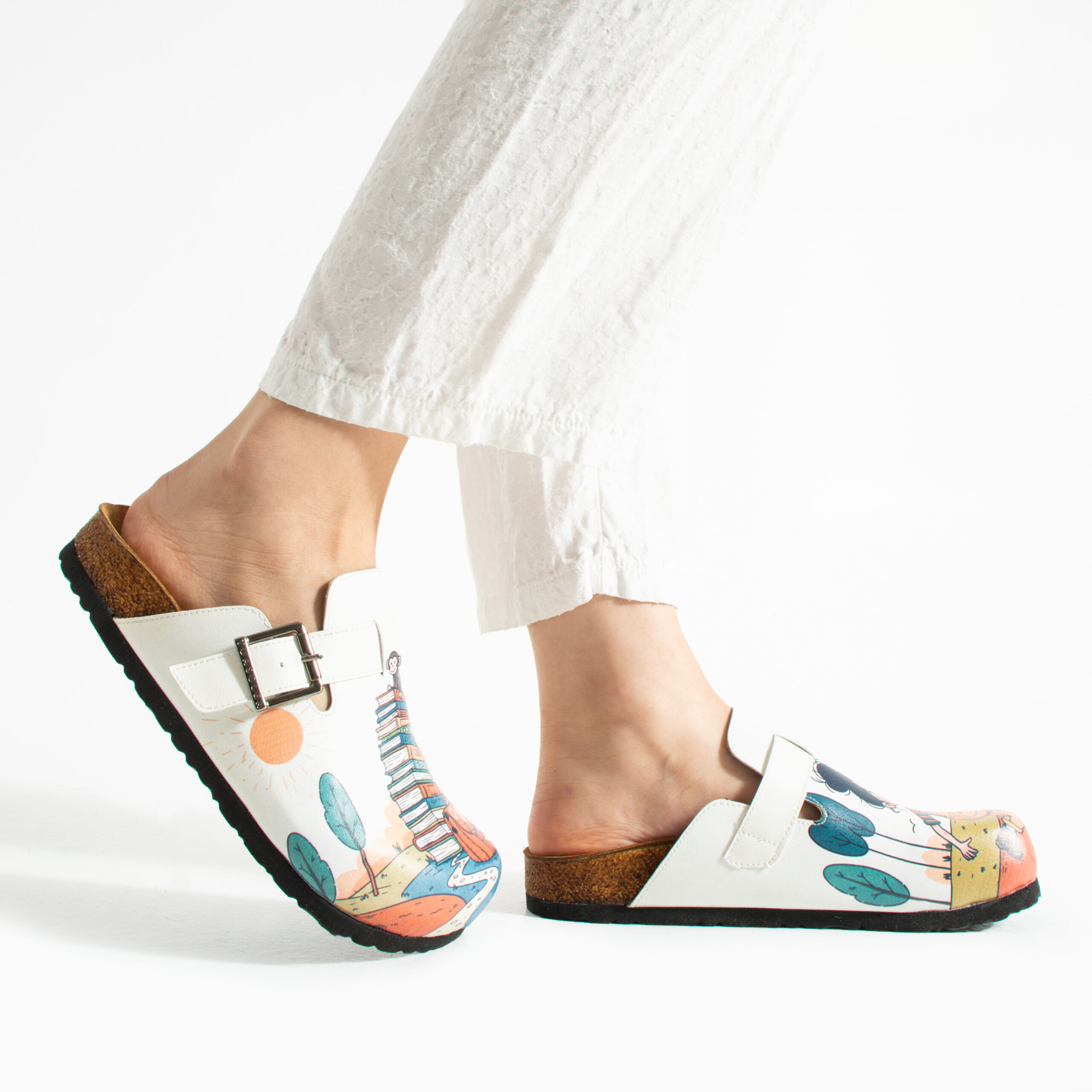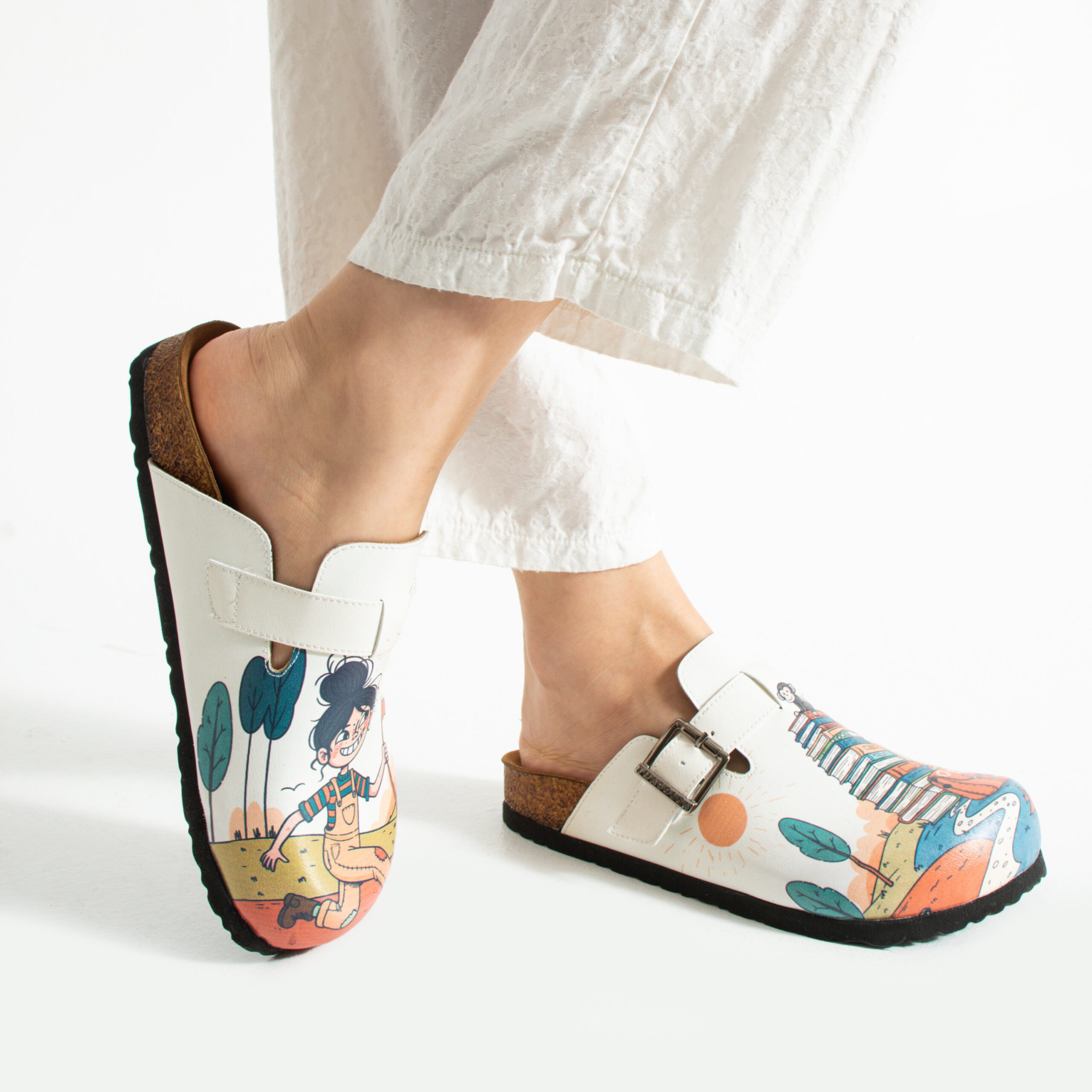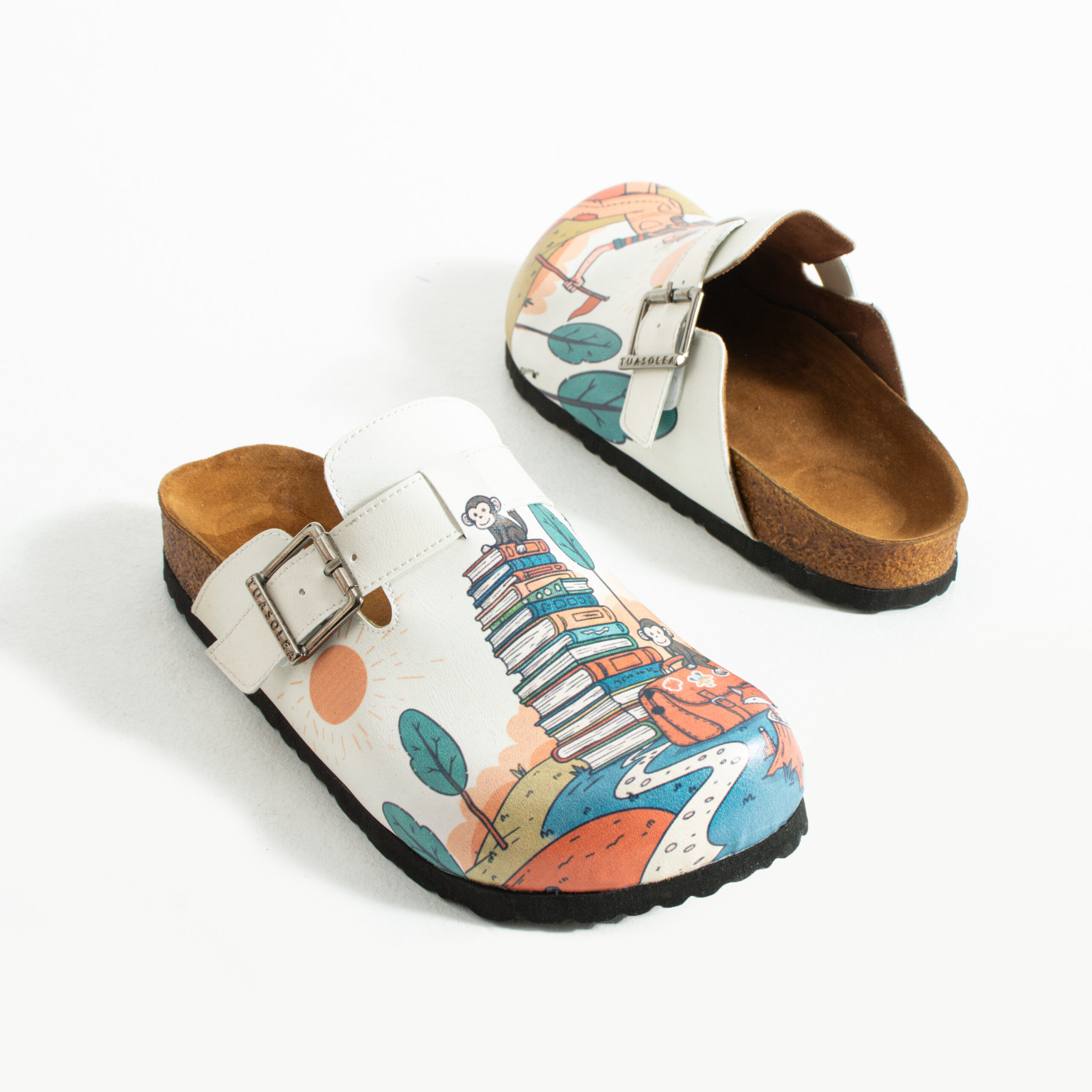 Изработени са от висококачествена еко кожа, устойчива на напукване и деформация, с дълготраен UV печат с илюстративен приключенски мотив, който запазва цветовете си за дълго. Ортопедичната подметка осигурява стабилна опора и равномерно разпределение на натоварването при продължително ходене, а стелката от микрофибър е приятна на допир, не запарва и не позволява приплъзване. Формата на сабото не притиска пръстите, металната катарама е устойчива на корозия и позволява лесно напасване към нормален и леко по-широк крак, а материалите не задържат прах, петна и неприятни миризми при ежедневно носене.