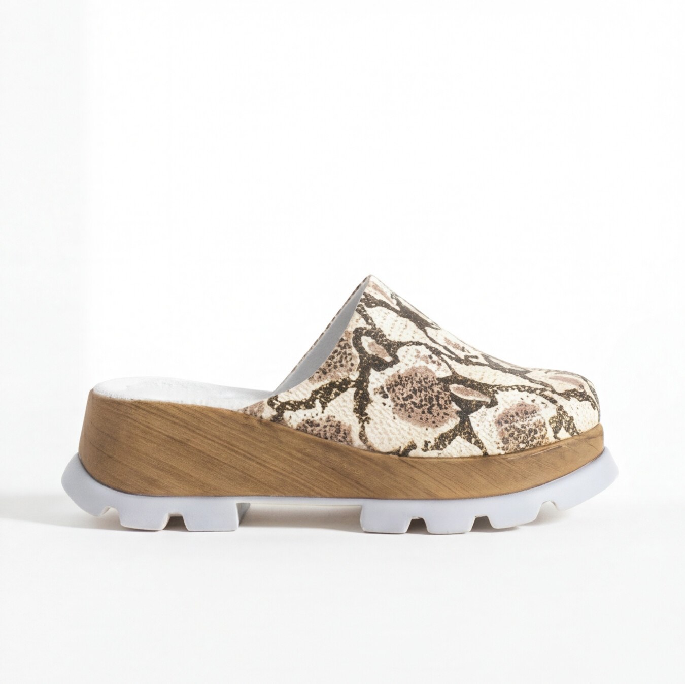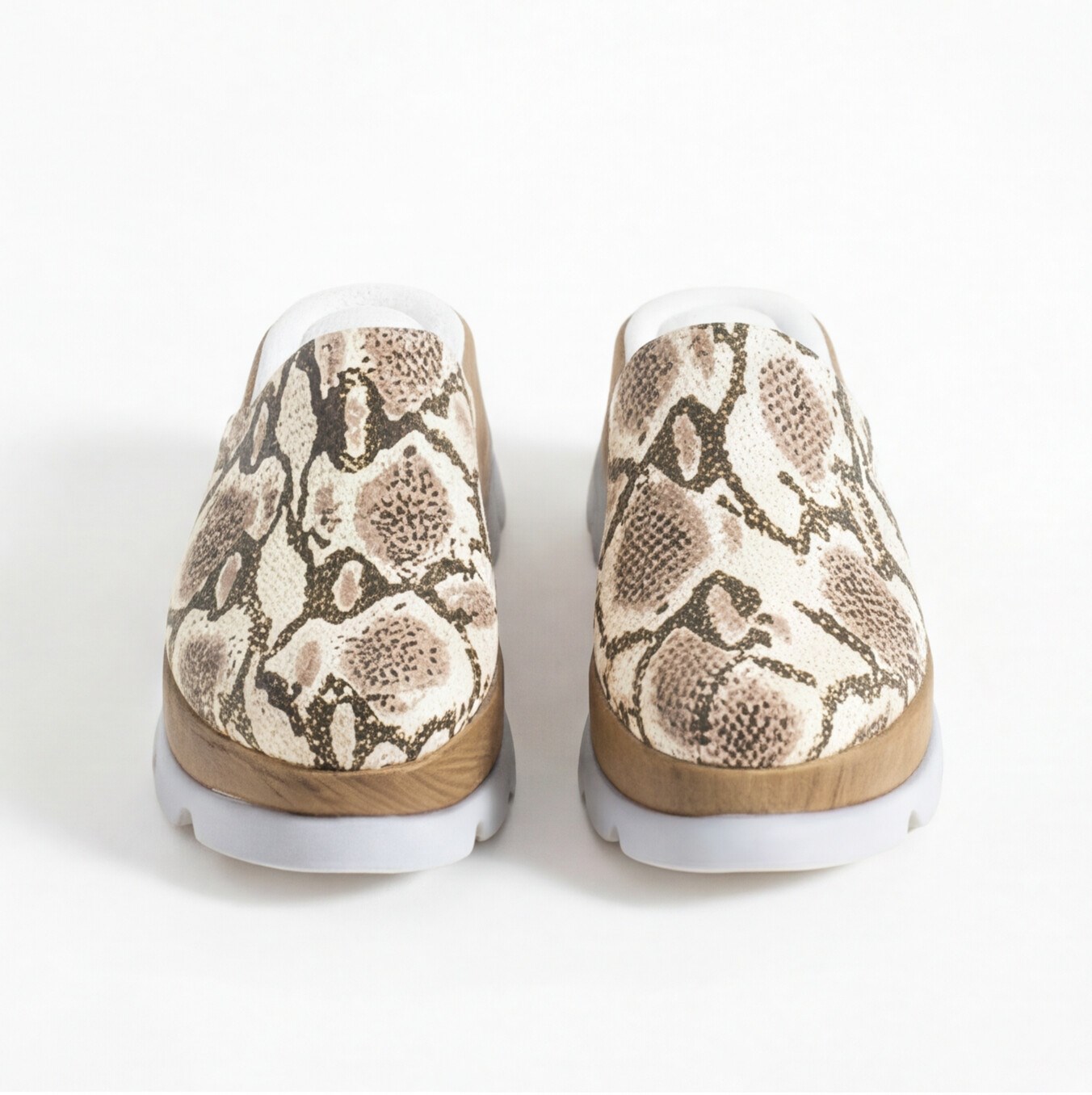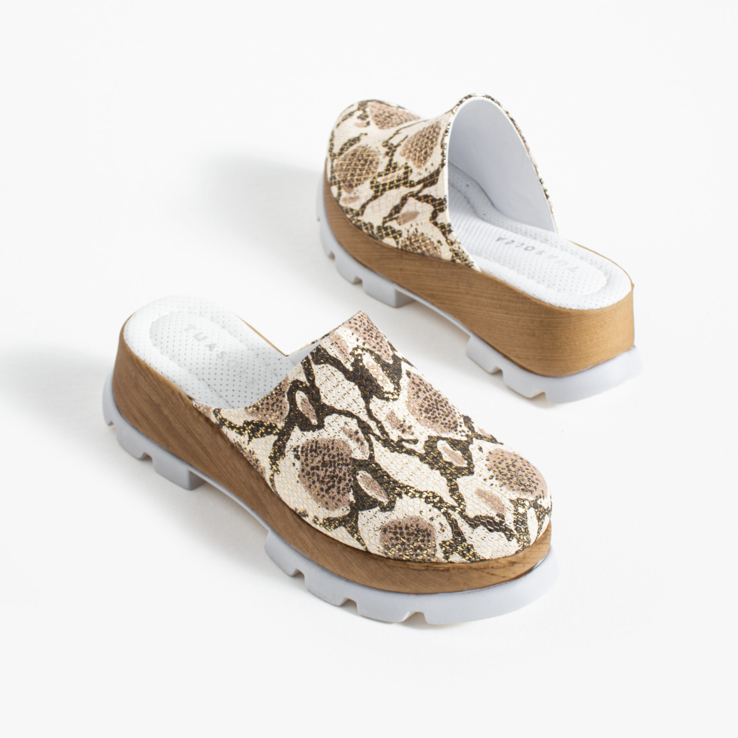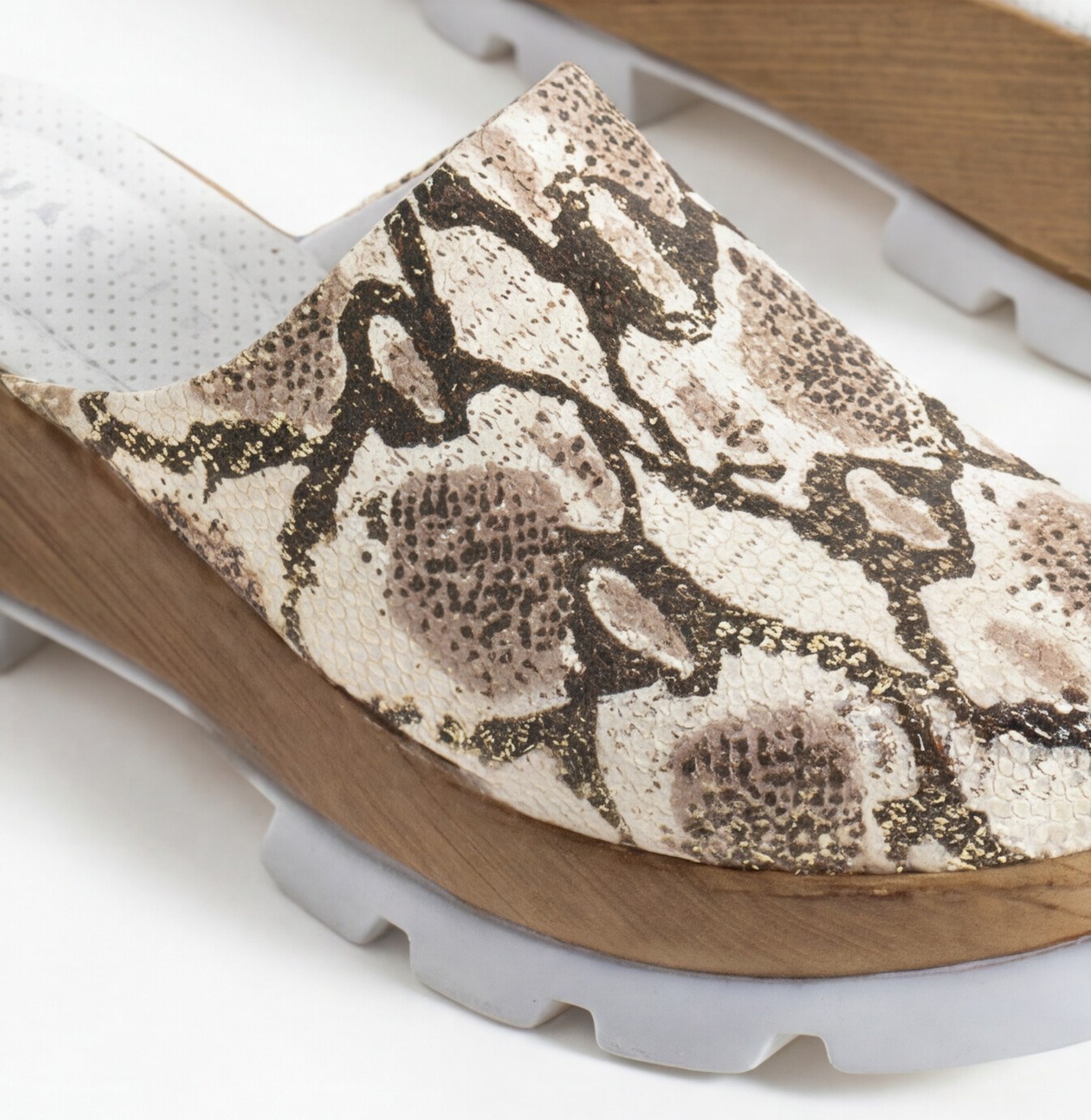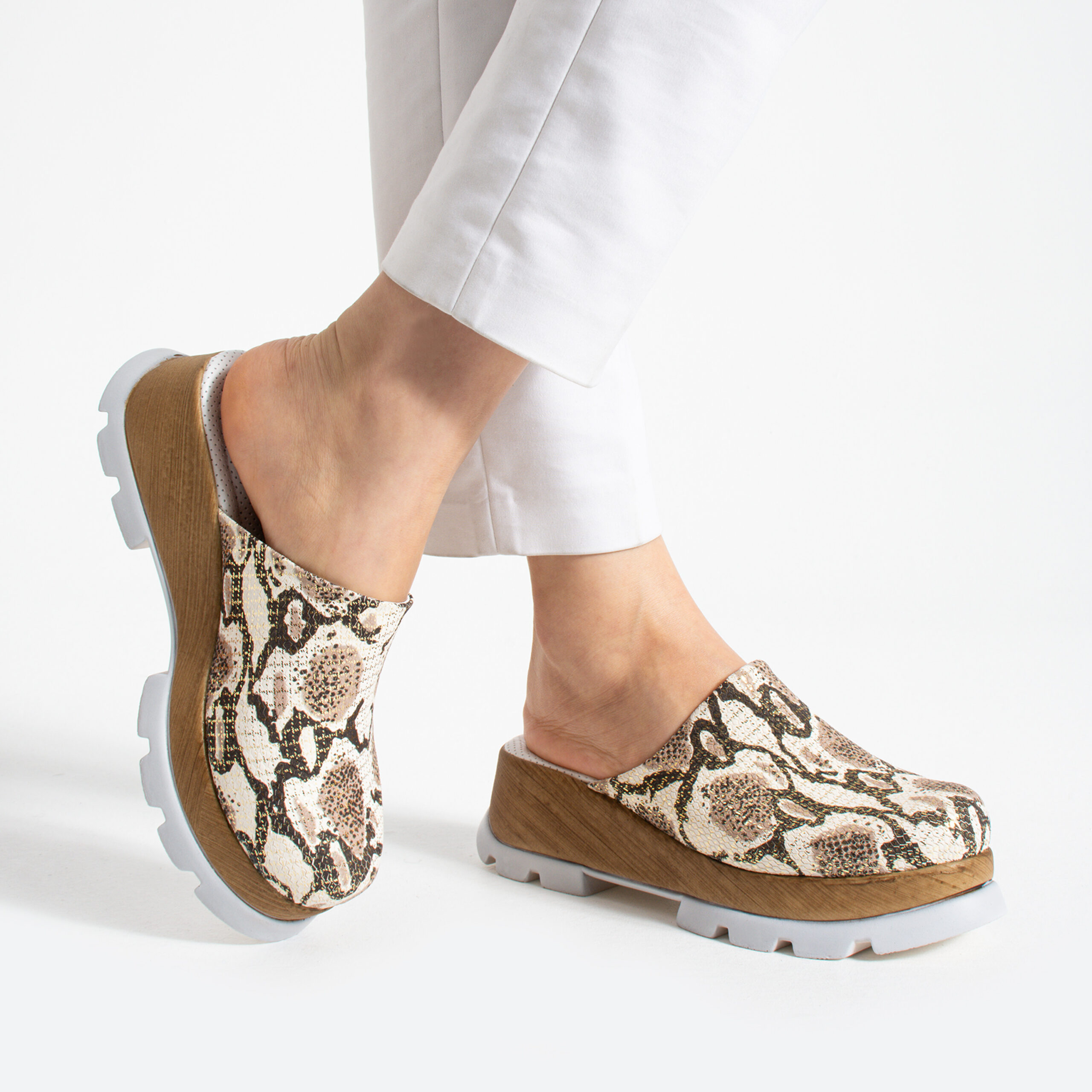 Дамско сабо от естествена кожа на платформа със змийски принт