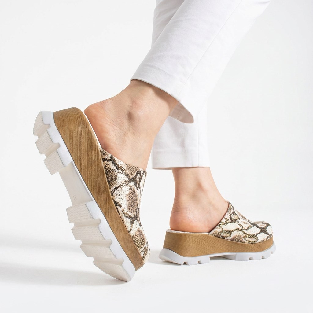 Дамско сабо от естествена кожа на платформа със змийски принт Дамско сабо от естествена кожа на платформа със змийски принт