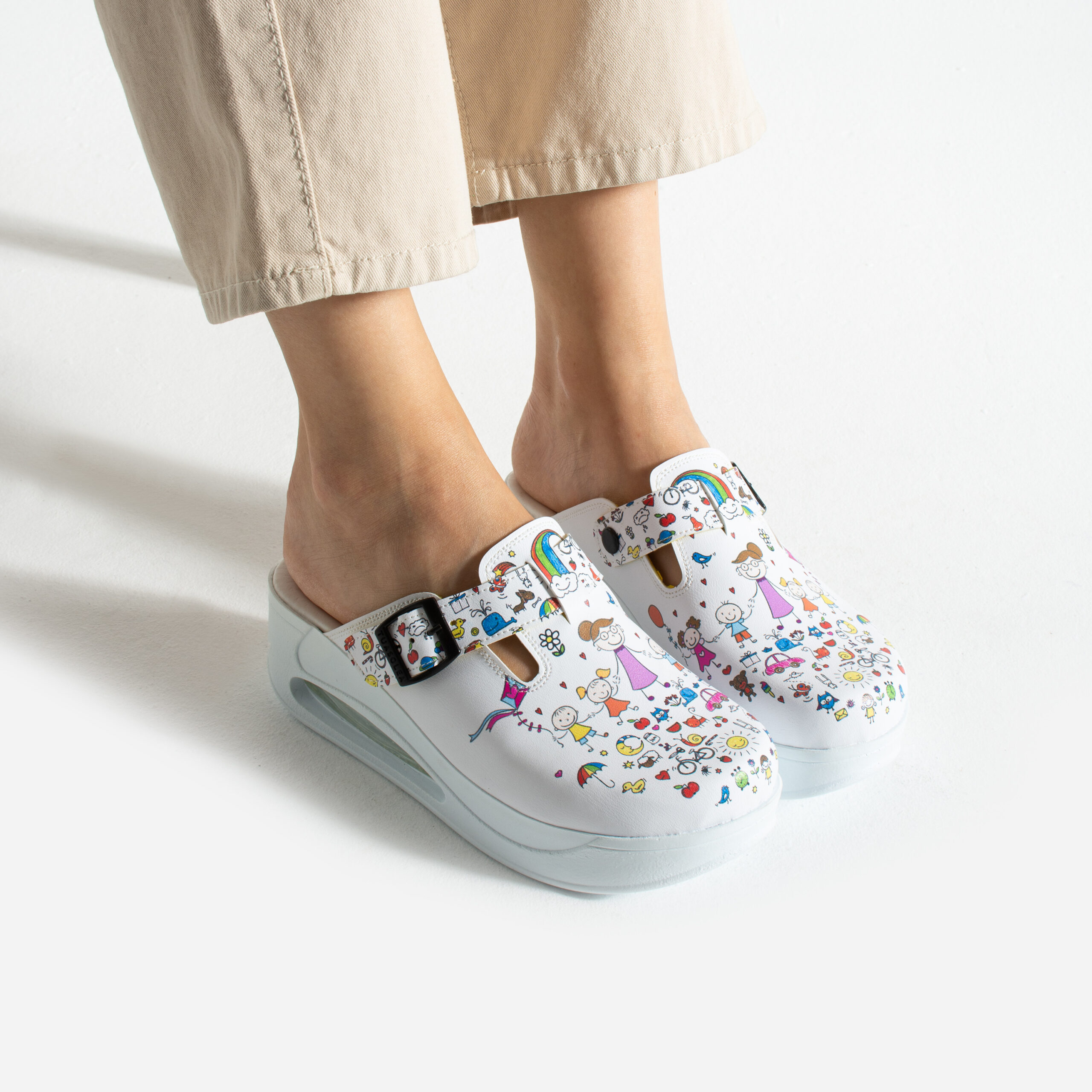 - Почистване: За почистване използвайте вода и сапун. Почистете външната част на обувките с мека кърпа или гъба. Не използвате абразивни препарати или такива на спиртна основа, тъй като те могат да повредят кожата или боята.