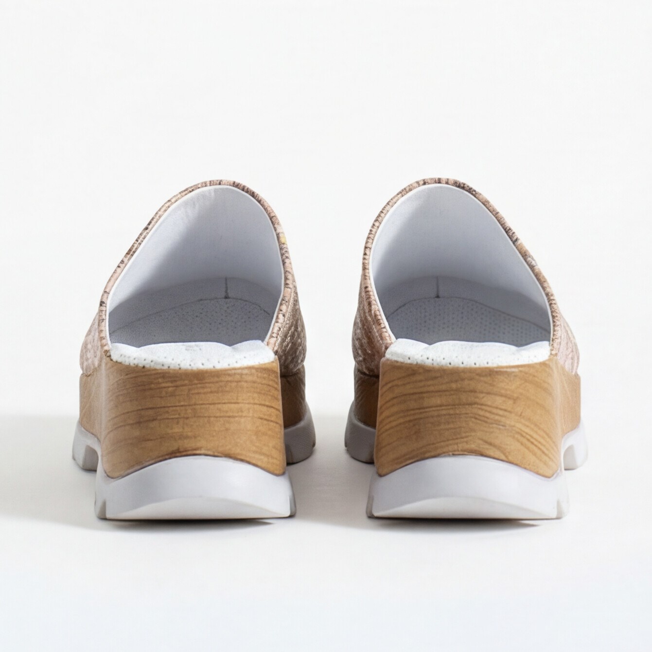 Омекотената стелка прави ходенето приятно през целия ден, а леката подметка с широка и стабилна основа дава сигурност при всяка стъпка. Дървесният ефект в основата подчертава топлите тонове и запазва усещането за класически дизайн, но в по-съвременен и удобен вариант.