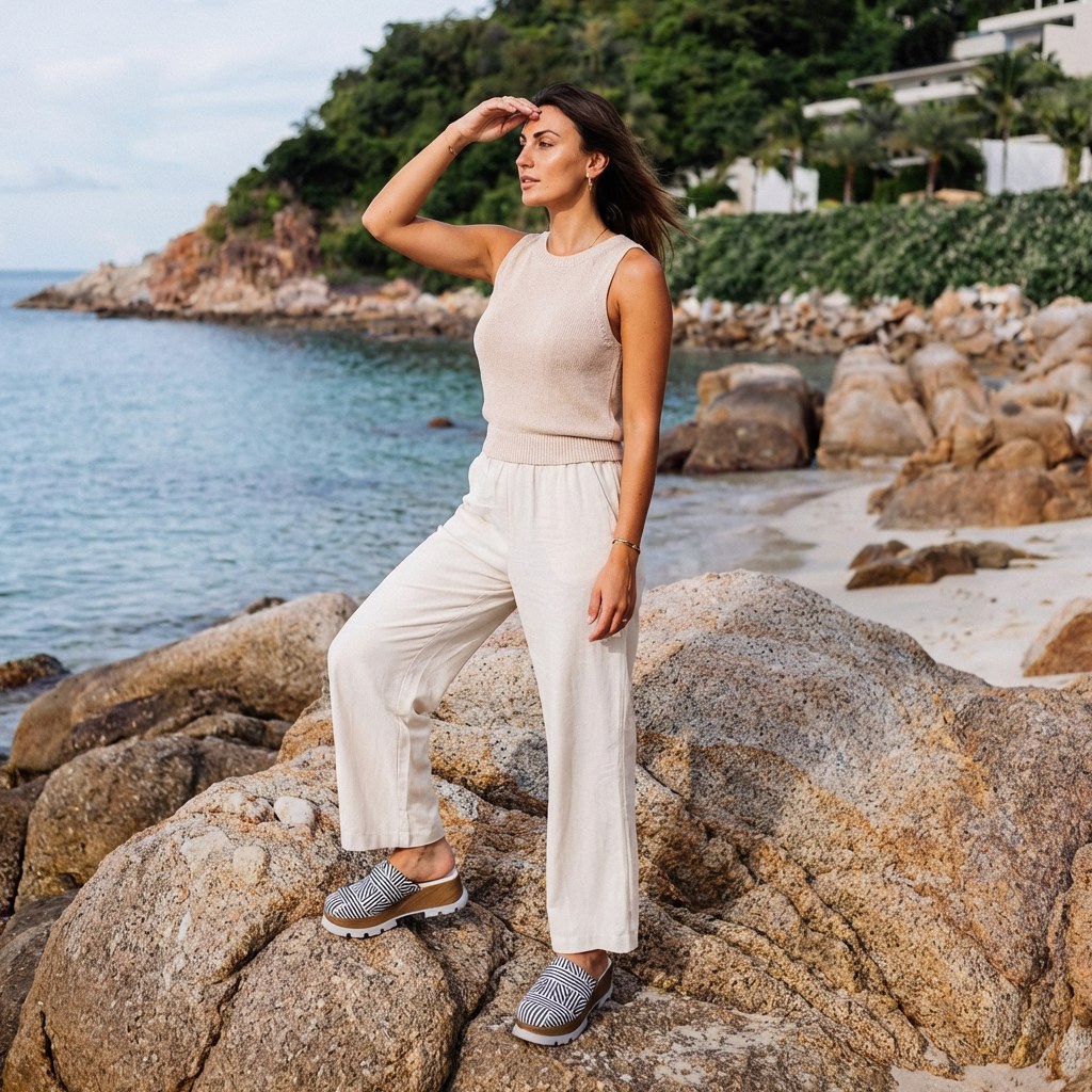Практично дамско затворено сабо на платформа, което спокойно влиза в ежедневието – за работа, пътуване или просто когато ти трябва удобно лятна лятна обувка с изчистен силует и лесно за съчетаване.