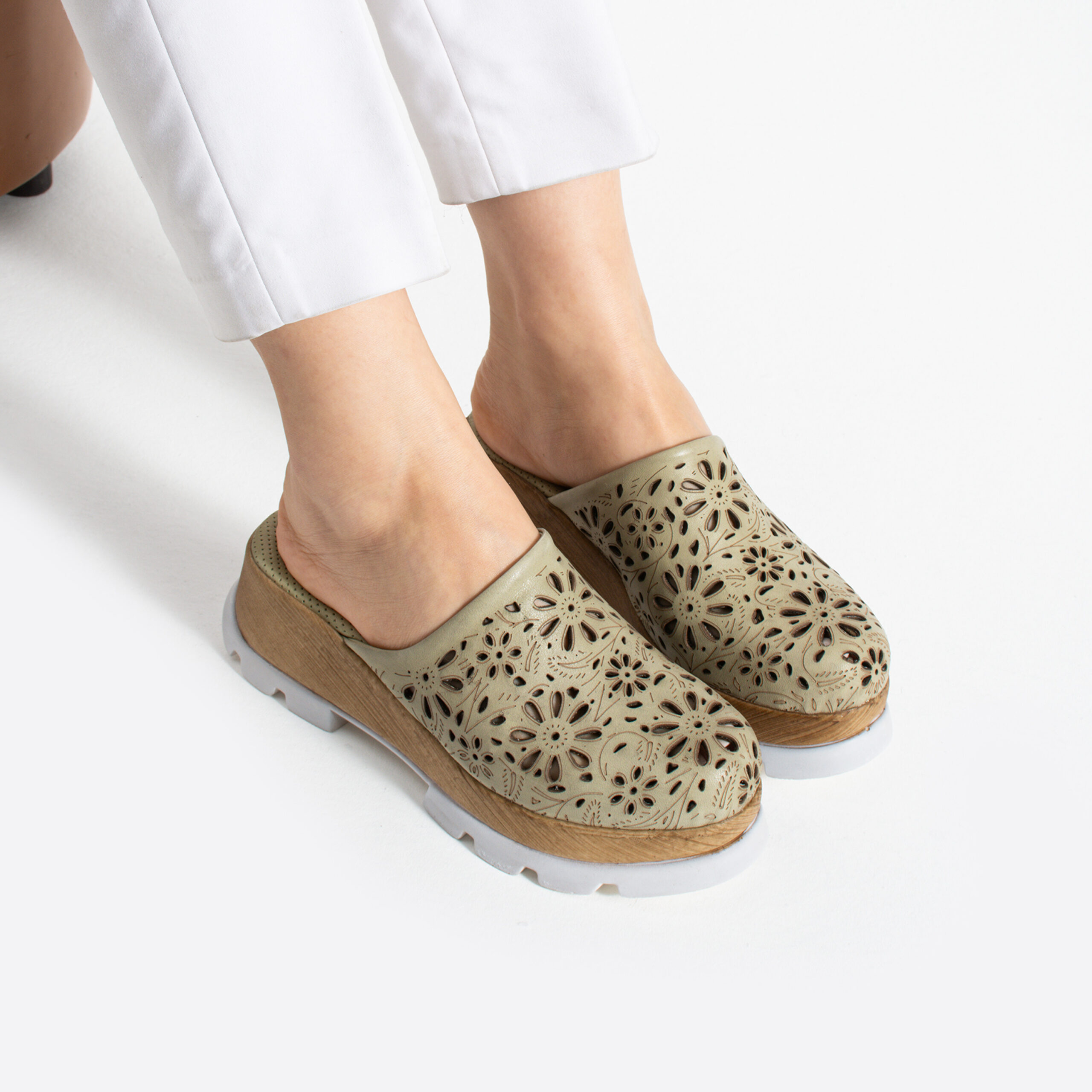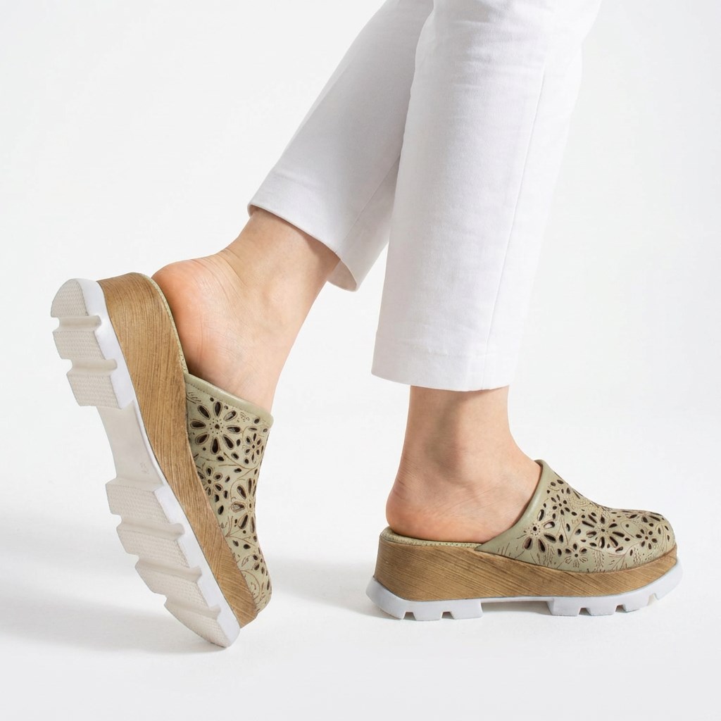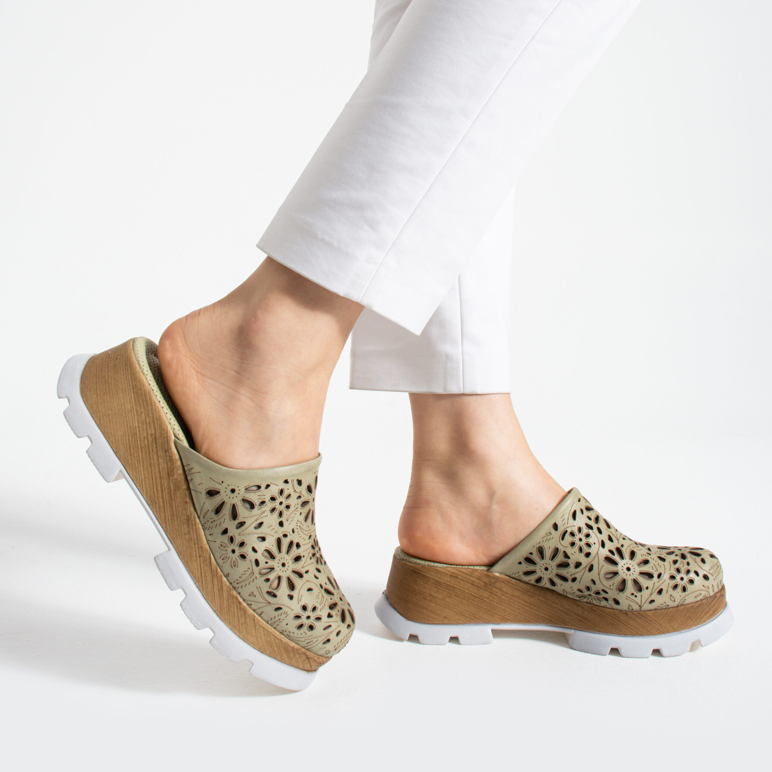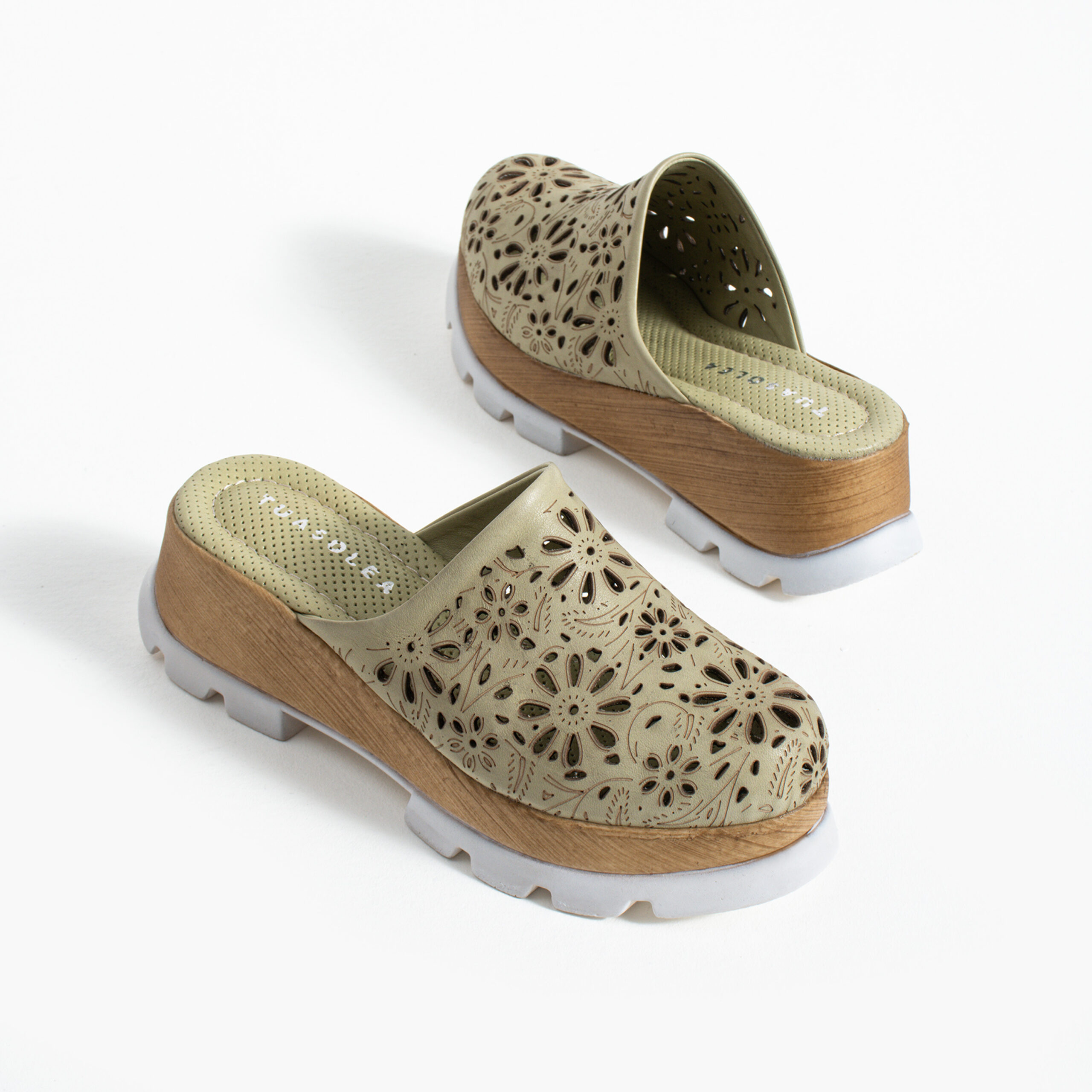 Зелено дамско сабо от естествена кожа на платформа Зелено дамско сабо от естествена кожа на платформа
