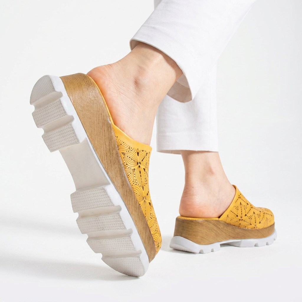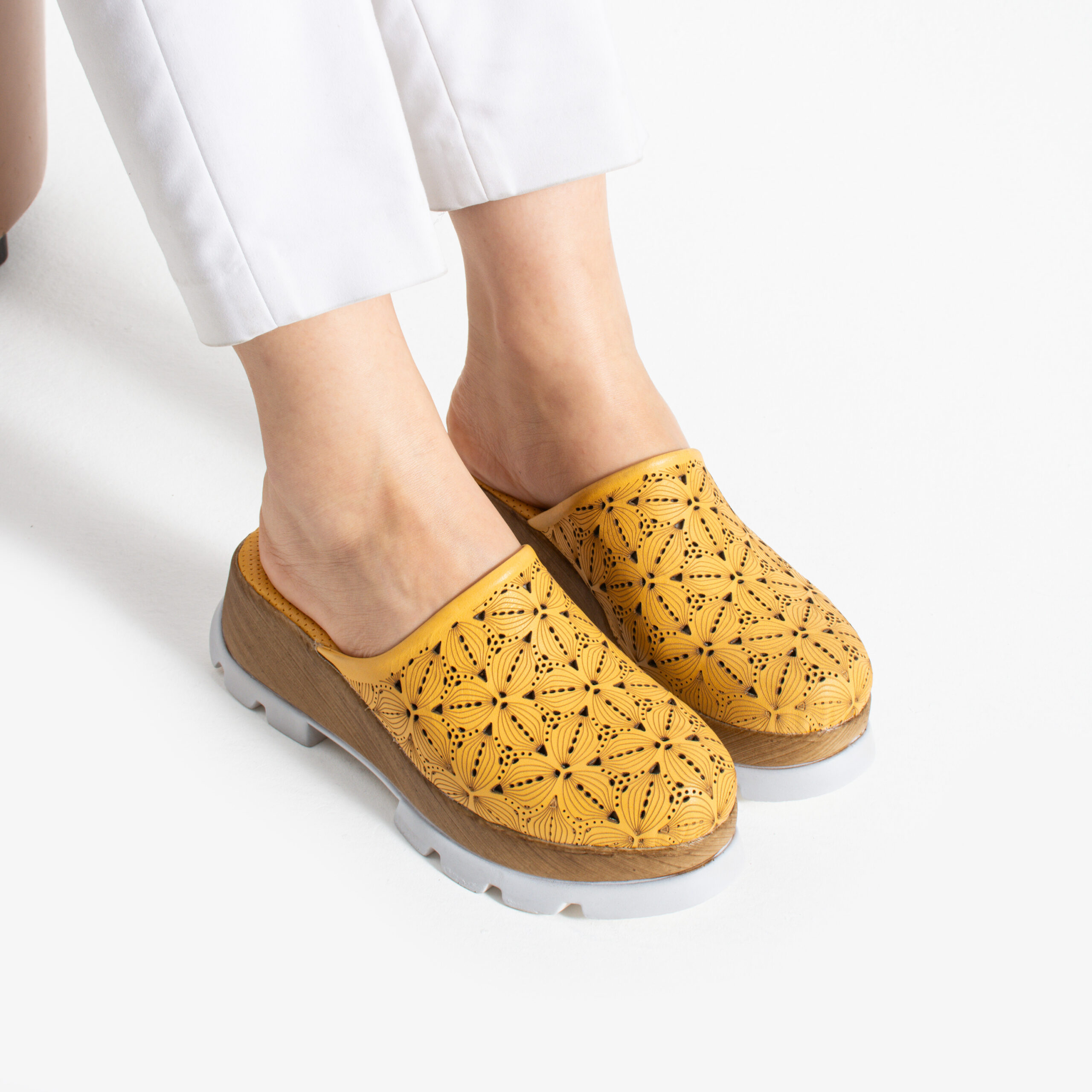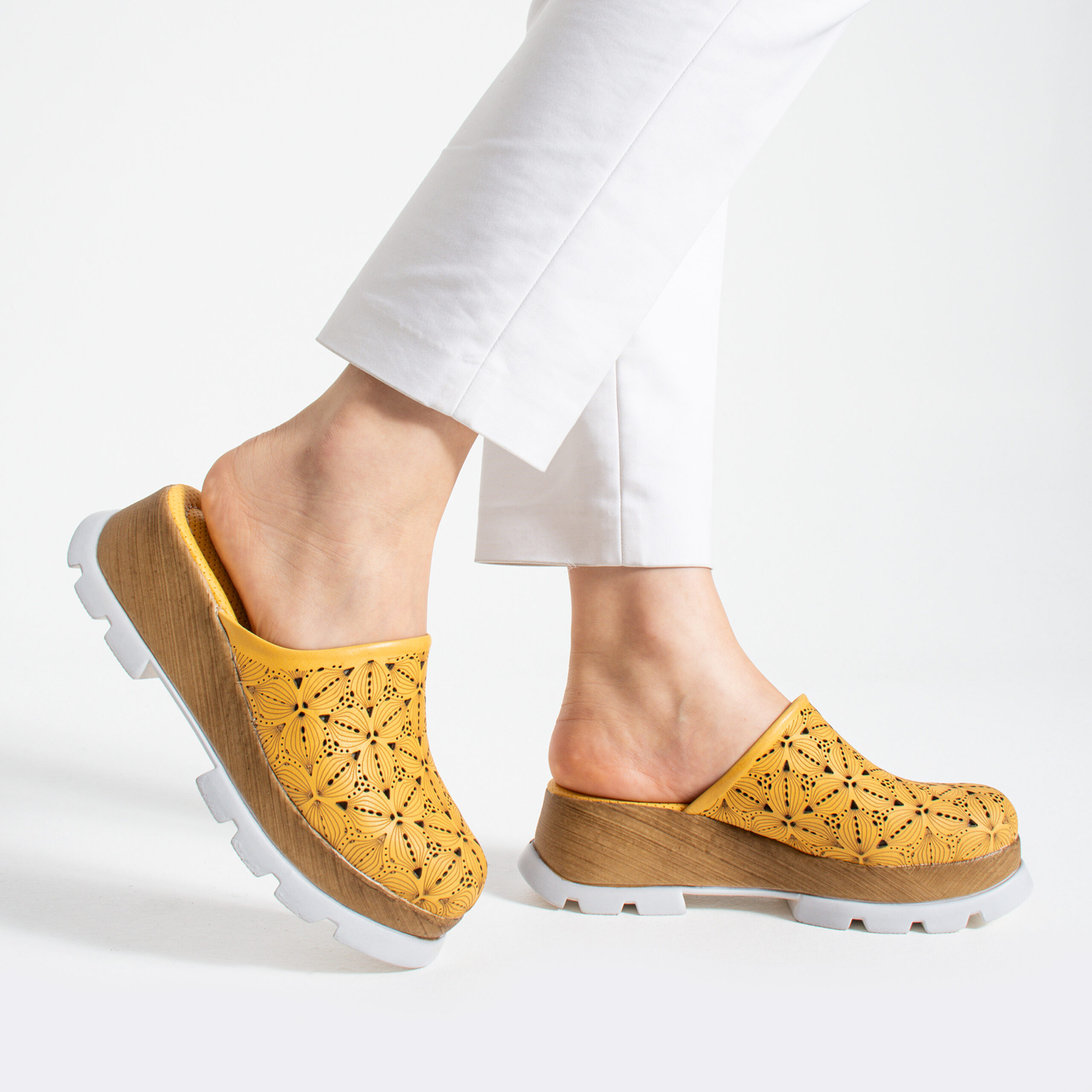 Жълто дамско сабо от естествена кожа на платформа Жълто дамско сабо от естествена кожа на платформа
