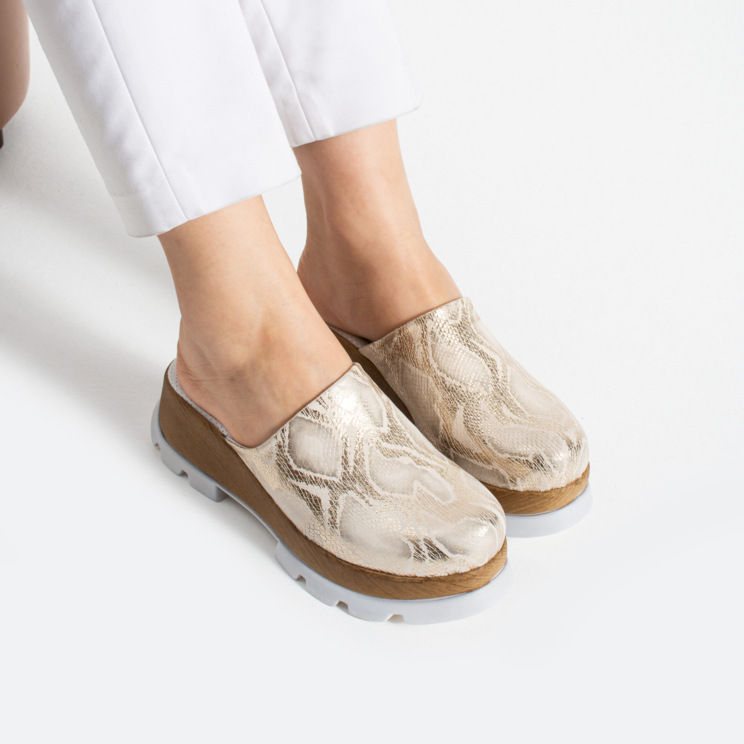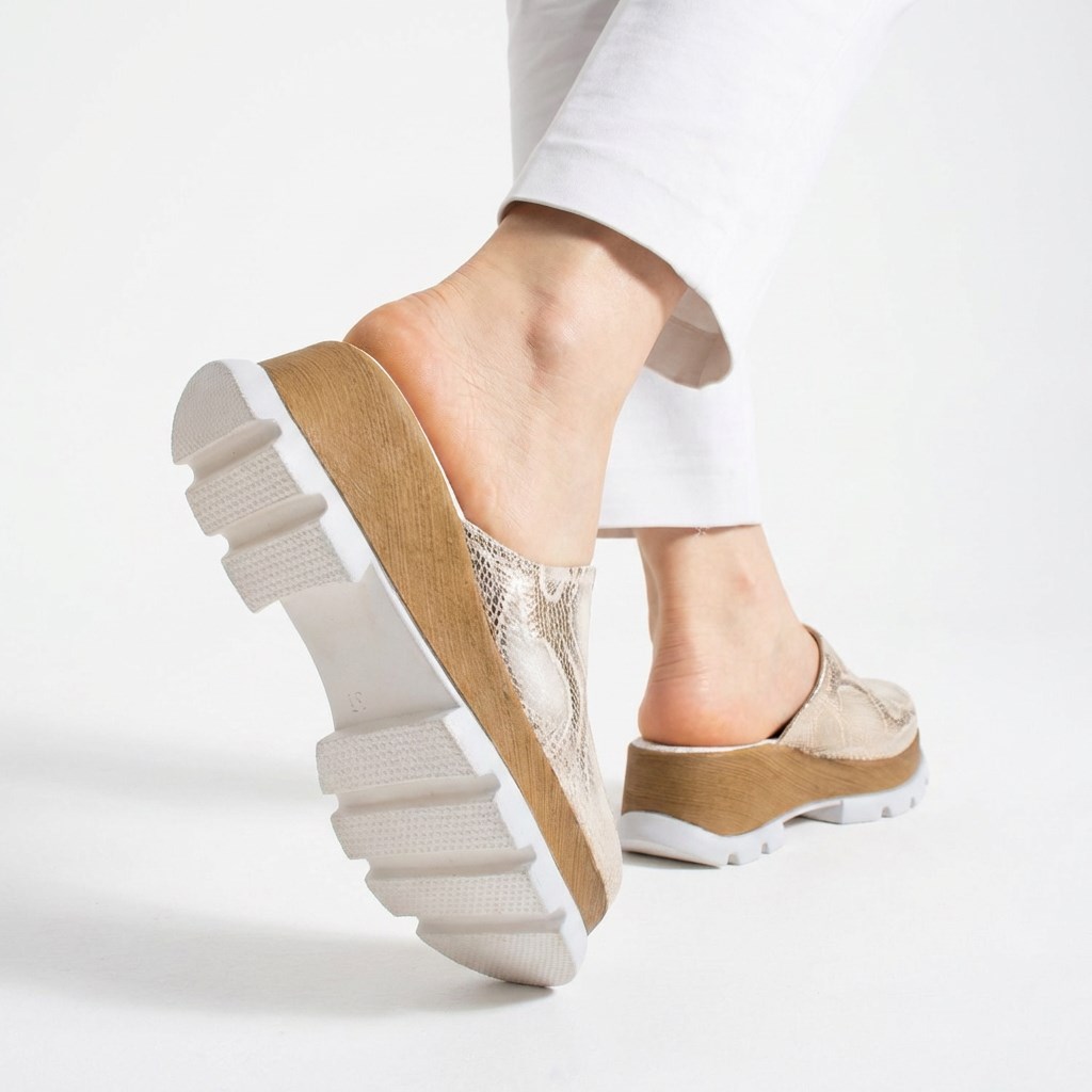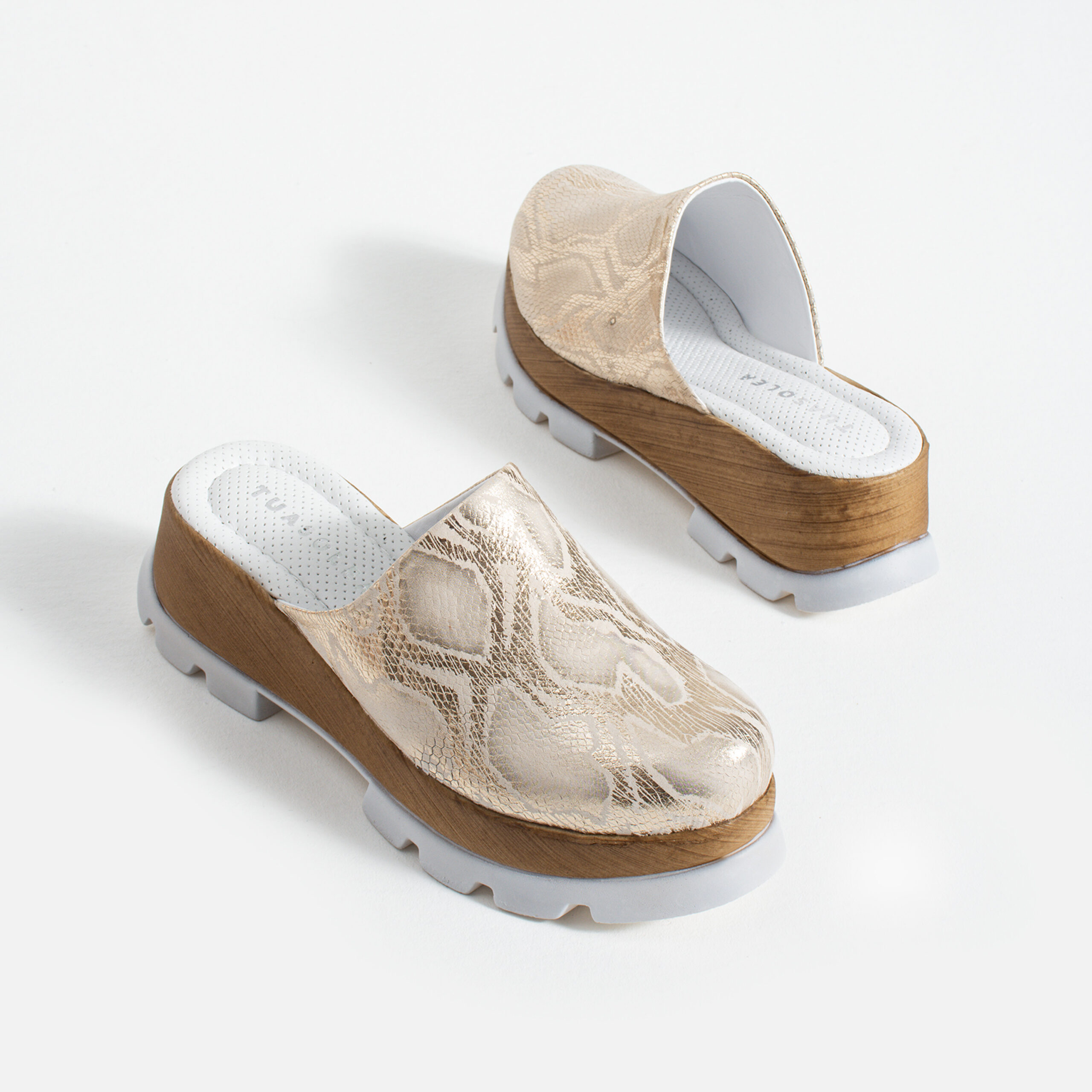 Златисто дамско сабо от естествена кожа на платформа Златисто дамско сабо от естествена кожа на платформа